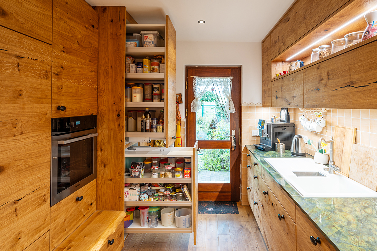 Natürlicher Landhausstil in Wildeiche Echtholz furniert mit geölter Oberfläche.